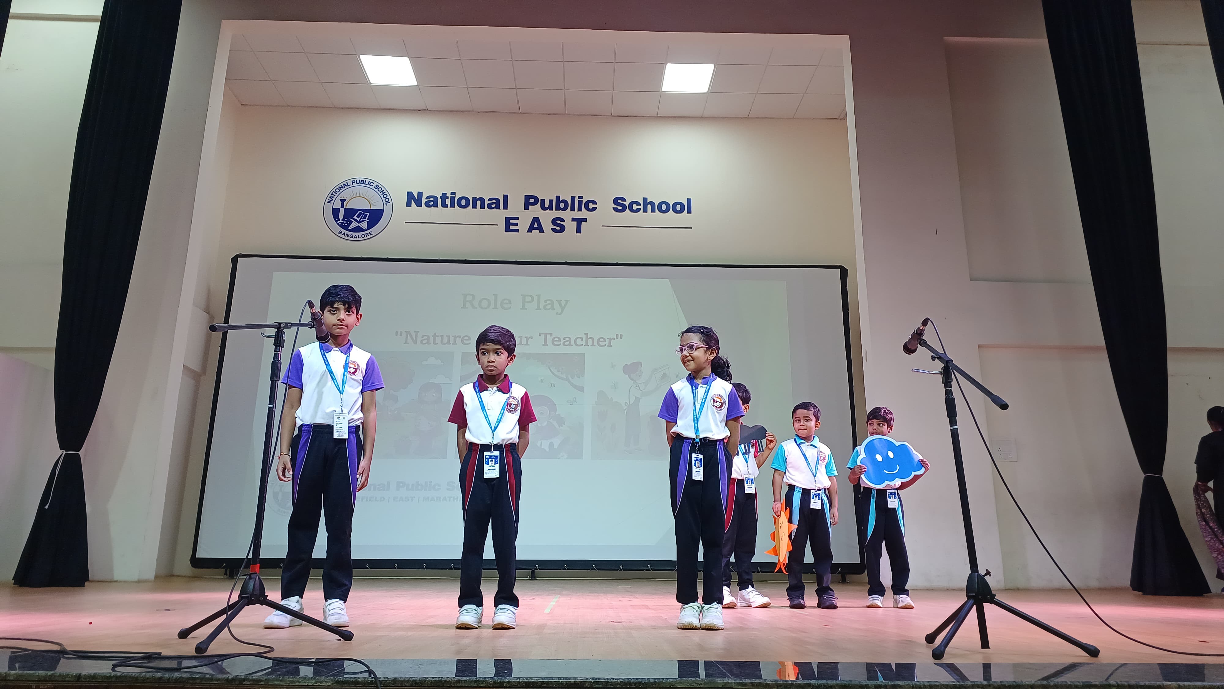 A delightful song on nature was sung by the students, bringing smiles and applause from everyone. It reminded us to appreciate the trees, the sun, the rain, and all the wonders around us that silently teach us how to live better. The role play beautifully demonstrated how different elements of nature like the sun, tree, clouds, and ant teach us important values. The assembly beautifully conveyed that nature is indeed our greatest teacher.