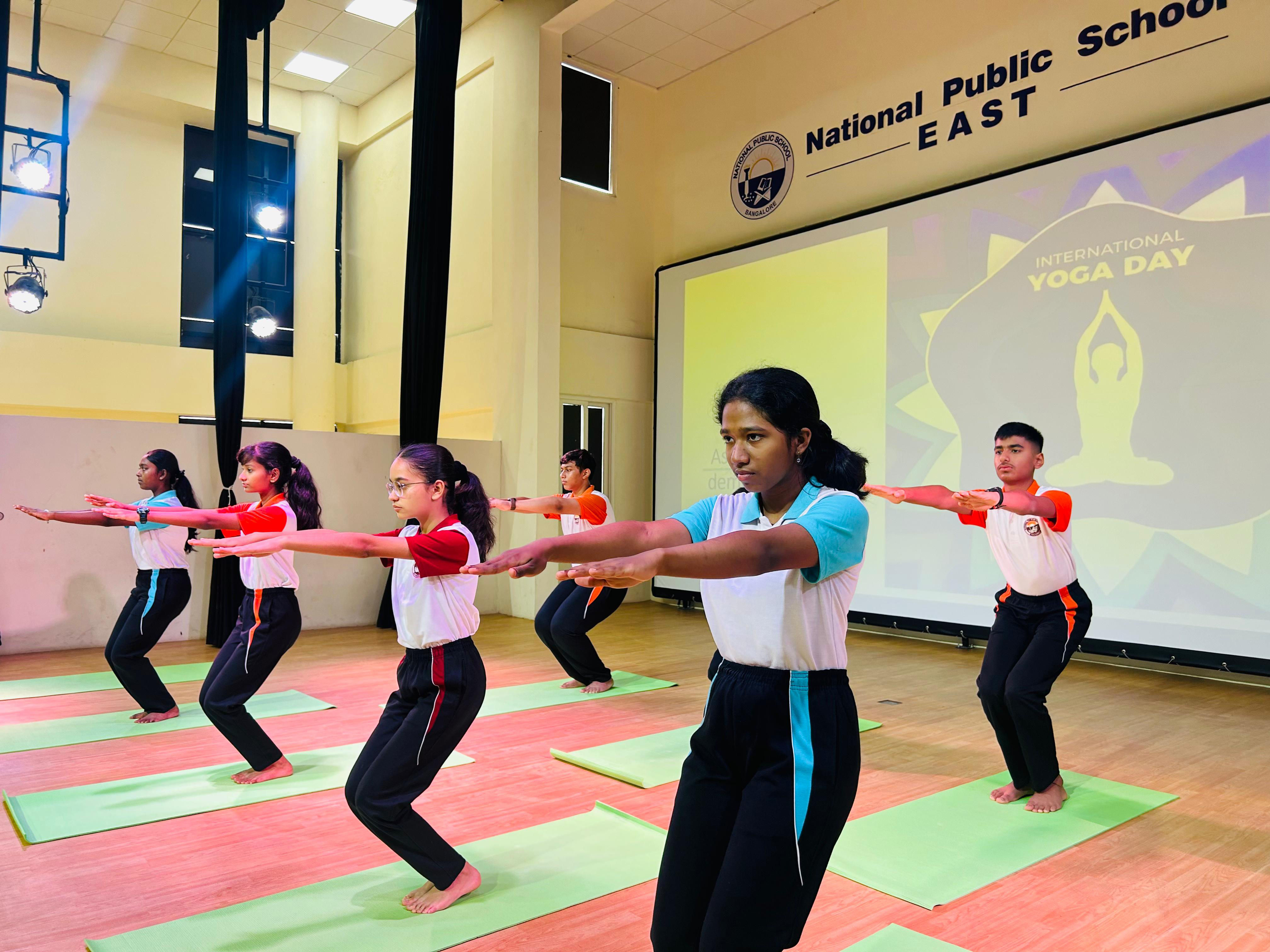 On the morning of 20th June 2025, a special assembly was conducted at NPS East to celebrate International Yoga Day. The event was led by the Yoga teachers and actively participated in by the students of Grades 6 -9.