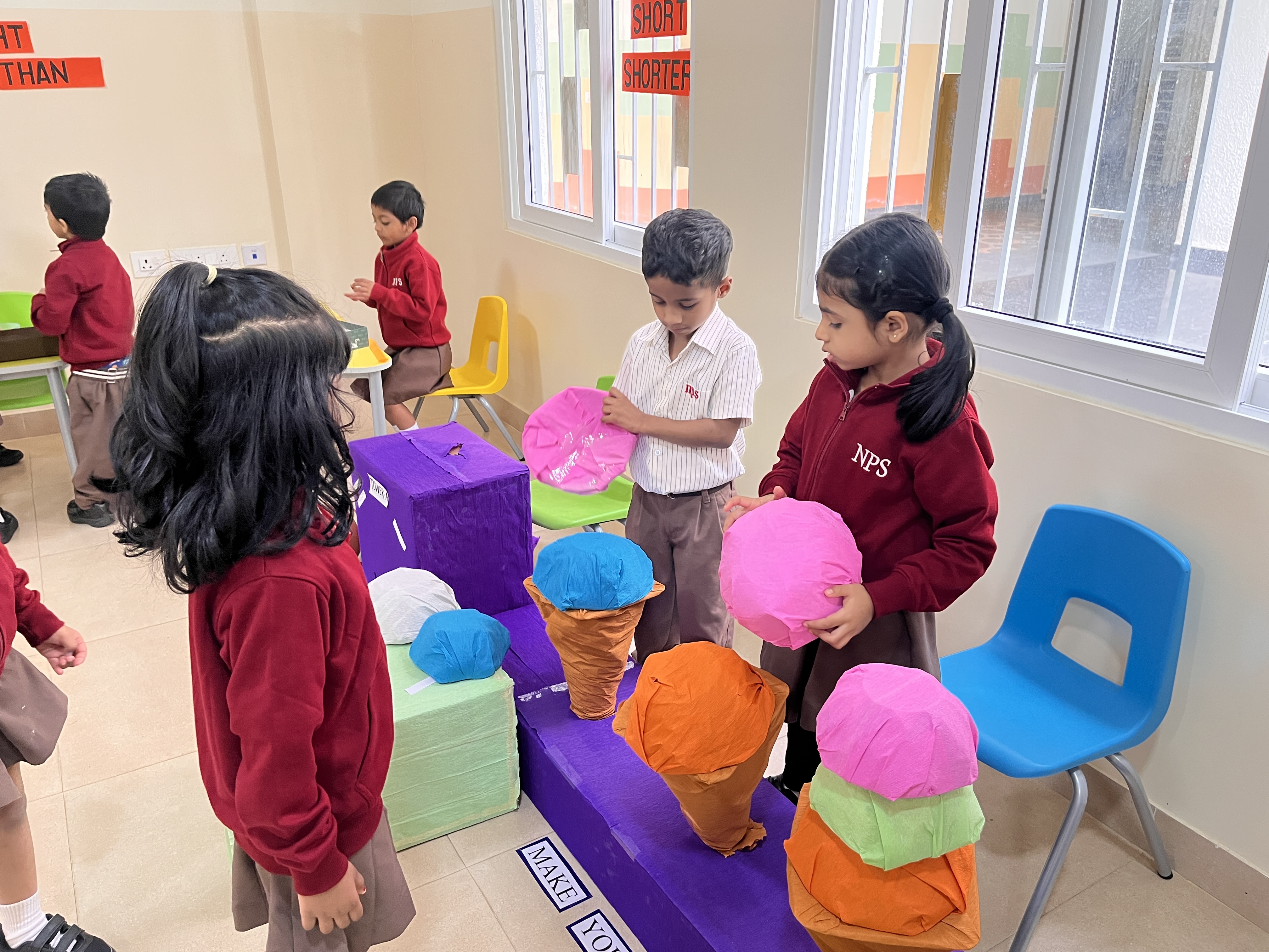 Our KG1 students explored Math concepts through a series of engaging, hands-on activities that sparked curiosity and creativity. The Math Lab was thoughtfully curated to help students recap and showcase their learning on a variety of pre-number concepts. As students moved through different learning stations, they actively explored each concept while their peers confidently explained their learning, fostering both collaboration and communication. The Math lab aimed to nurture their Numeracy skills while keeping the learning process engaging.