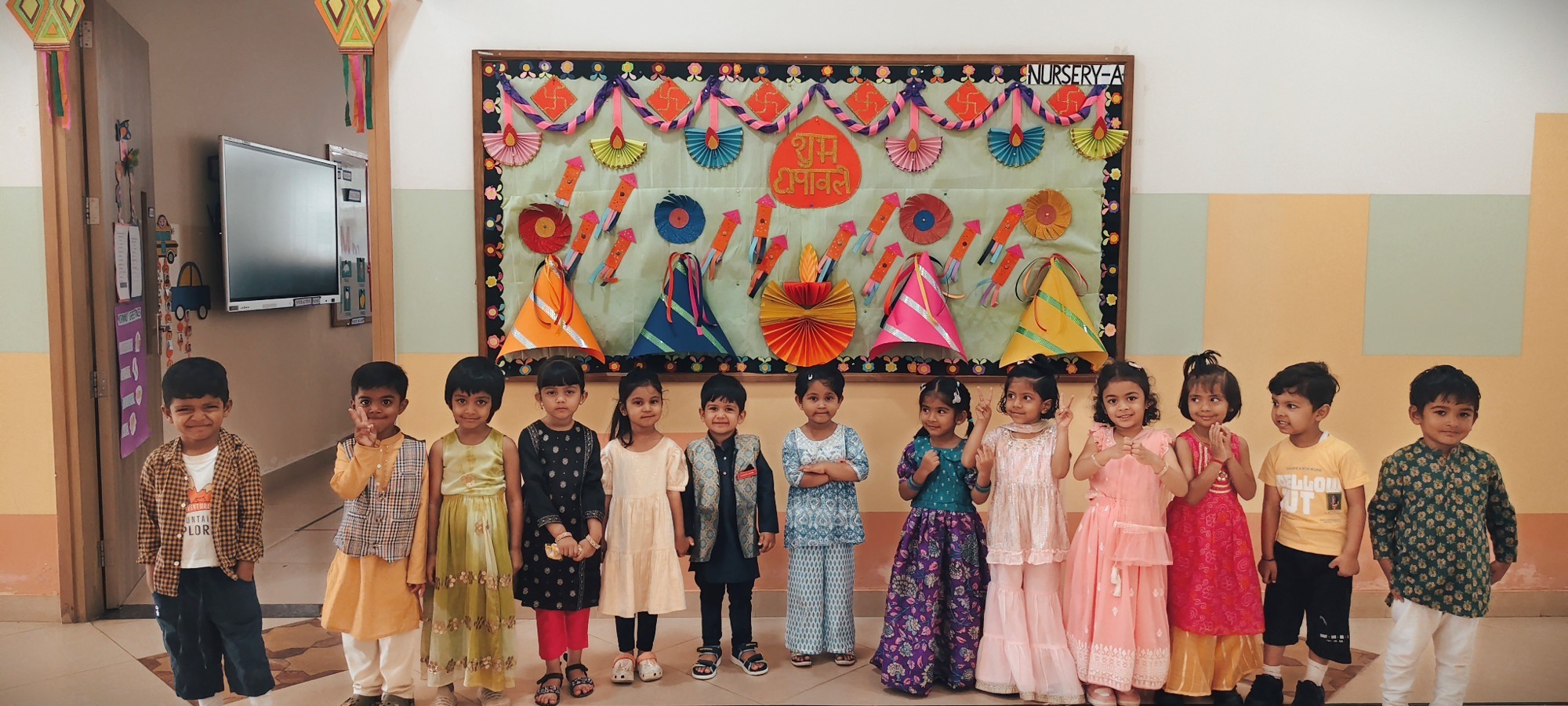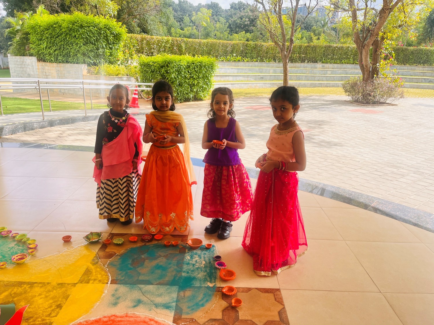 Dressed in colourful attire, the students of KG 1 C took the stage and delighted everyone with their performance through a skit, dance and song sequence. This class assembly captured the essence of the festival emphasizing love, togetherness and joy of gifting. As part of the festivities, Pre-Primary students engaged in a creative diya painting activity, adding a splash of creativity to the clay diyas.