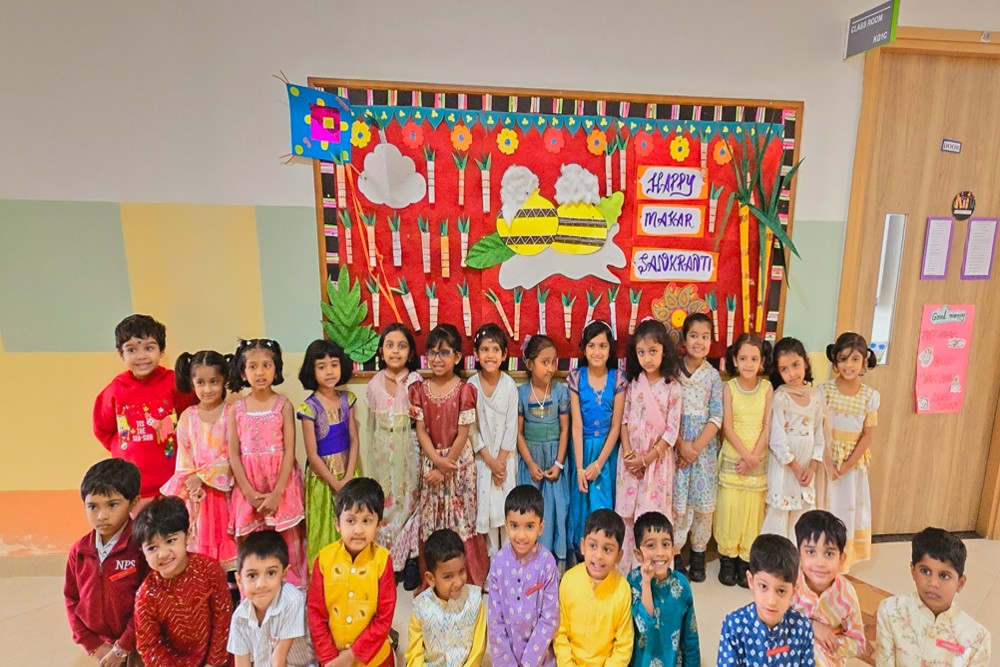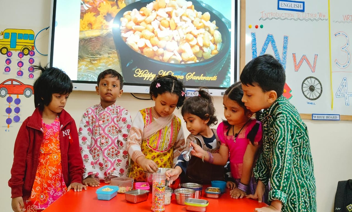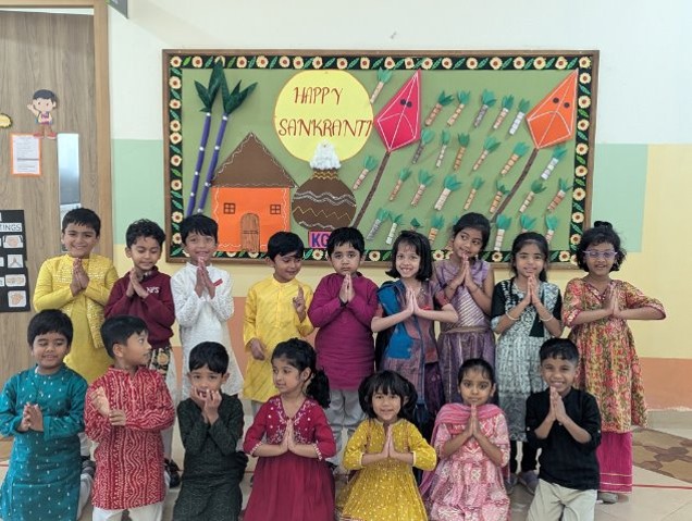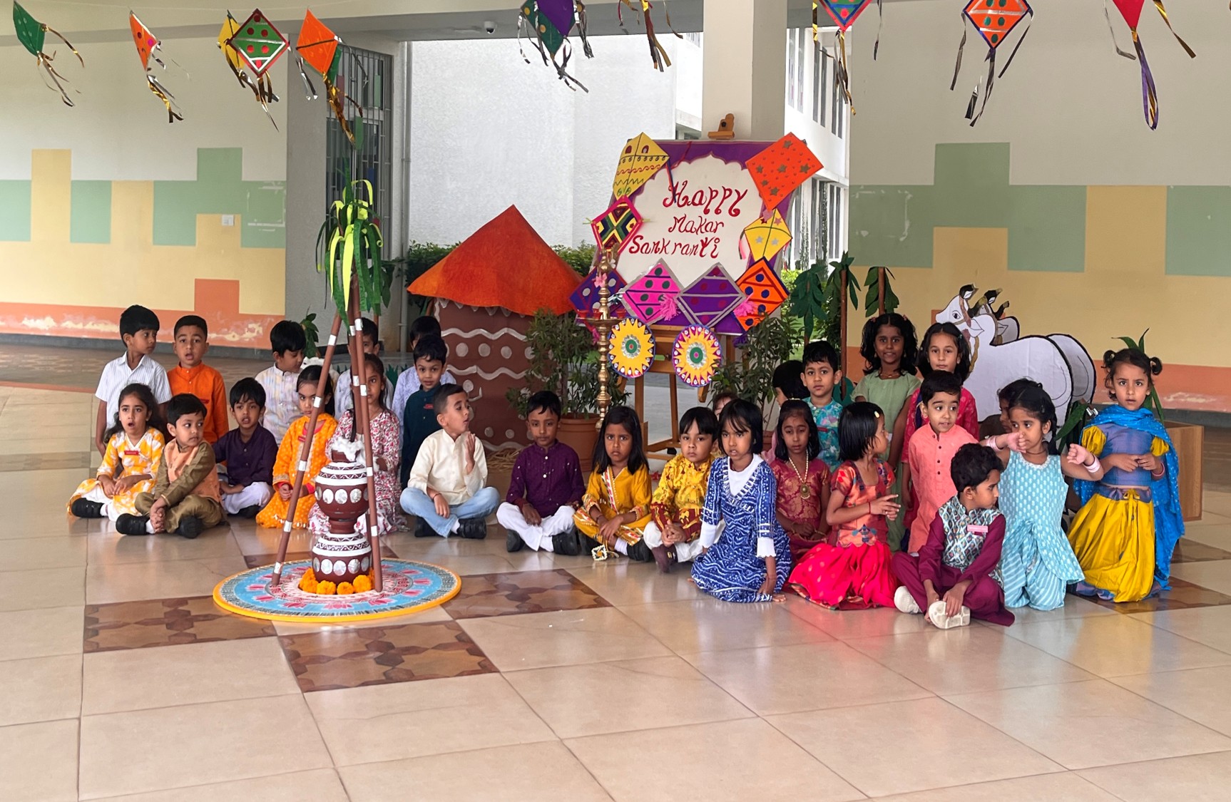 Pre-Primary students dressed in beautiful traditional attire, added festive charm at school for the Sankranti celebration. The little ones learnt the significance of this festival and participated in mixing ingredients and tasting 'Ellu Bella' the savoured treat of Karnataka. Kite flying on the school ground added to their excitement, making the celebration truly memorable for everyone!
