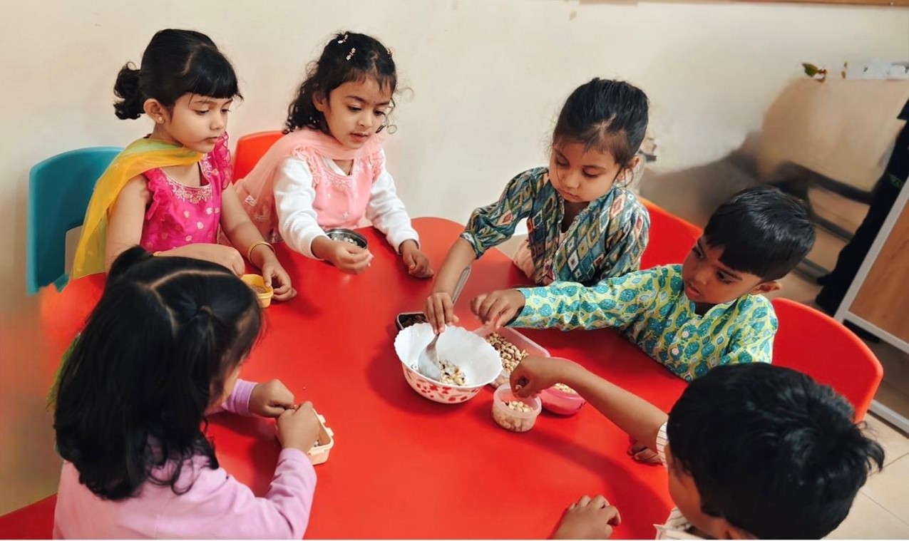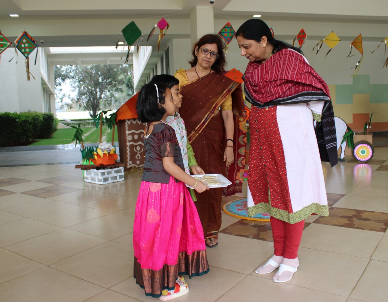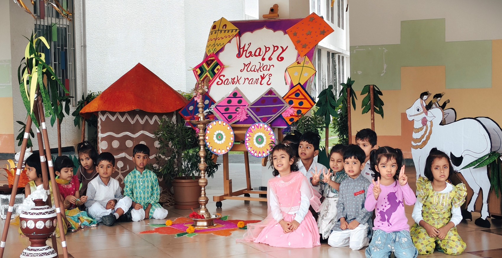 Pre-Primary students dressed in beautiful traditional attire, added festive charm at school for the Sankranti celebration. The little ones learnt the significance of this festival and participated in mixing ingredients and tasting 'Ellu Bella' the savoured treat of Karnataka. Kite flying on the school ground added to their excitement, making the celebration truly memorable for everyone!