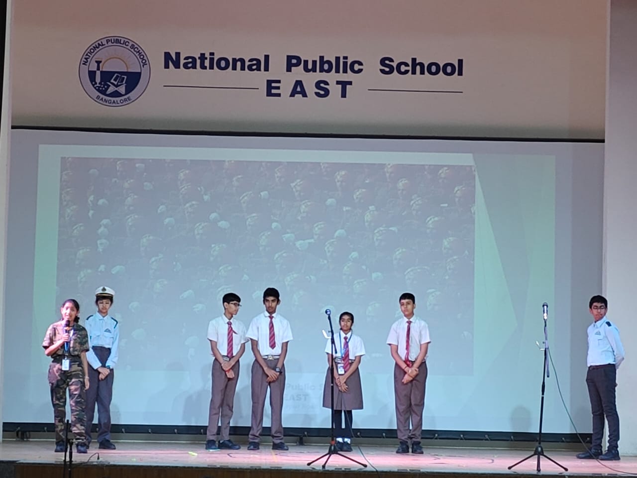 The students of Grade 8A conducted a special morning assembly on the occasion of National Armed Forces Flag Day to honour the bravery and sacrifices of the Indian Army, Navy, and Air Force