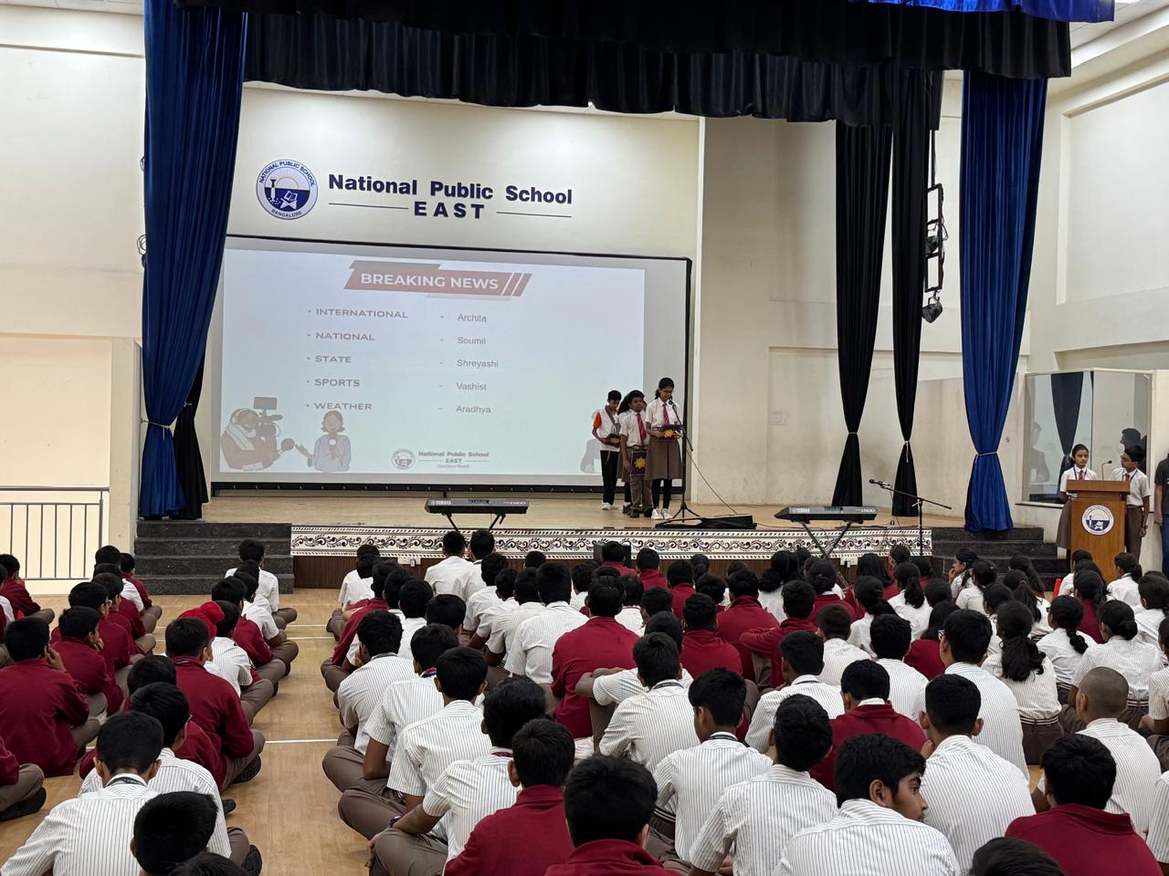 The News segment provided updates from international, national, and state events, along with sports and weather highlights. The Word of the Day, Animotophobia—the fear of one’s own emotions—was introduced with an illustrative sentence, helping expand students’ emotional vocabulary.