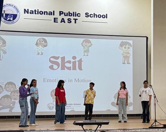 The assembly began with a soulful prayer, followed by the National Pledge, reinforcing unity and shared responsibility. Students then presented the Thought of the Day in English, Hindi, and Kannada, emphasizing how understanding our emotions strengthens mental health, decision-making, and relationships.