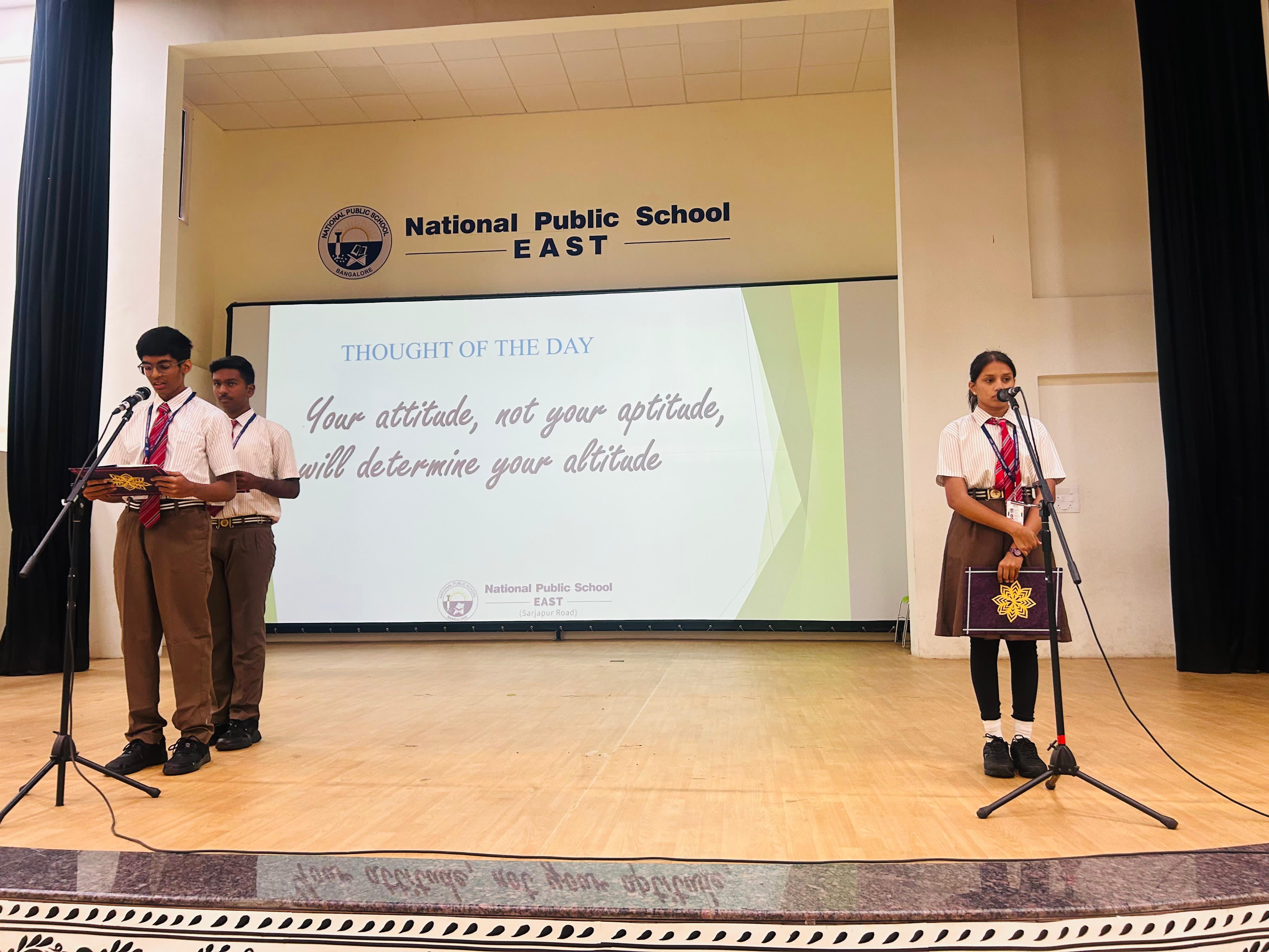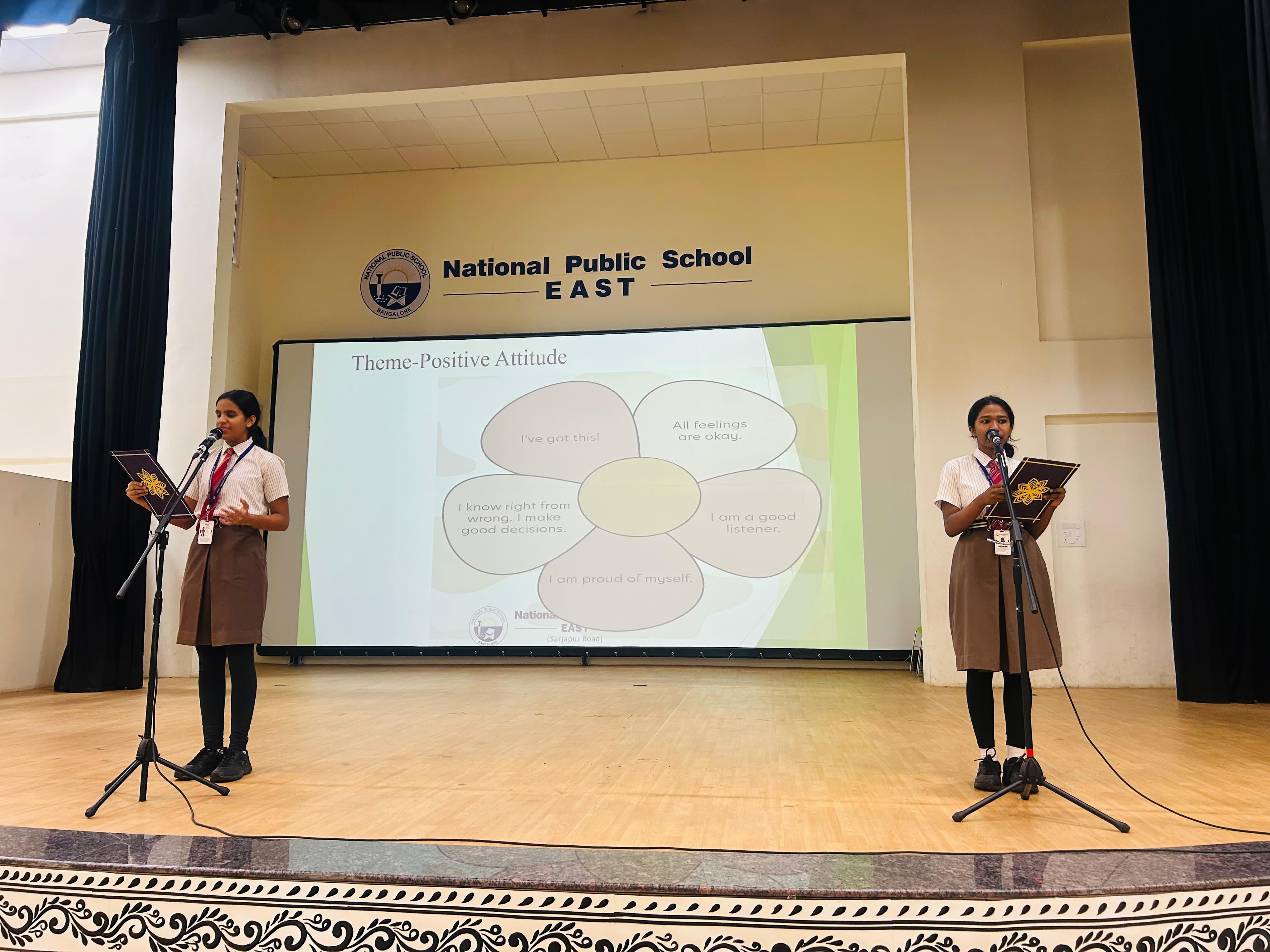 The assembly commenced with the morning prayer, the National Pledge, an inspiring Thought for the Day, and current news updates. This was followed by an introduction to the theme, highlighting how a positive attitude can transform challenges into opportunities and foster resilience.