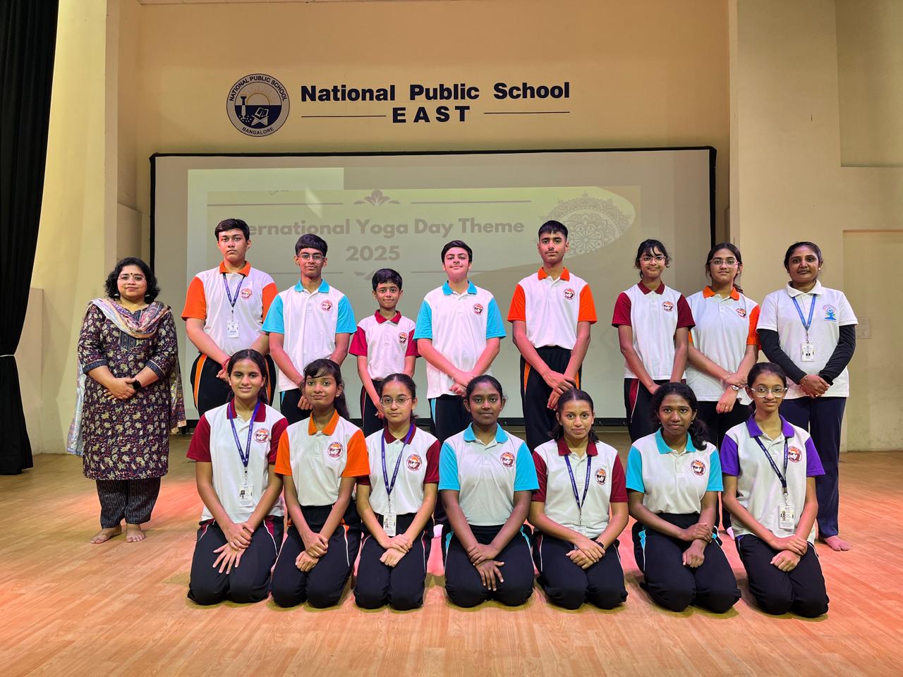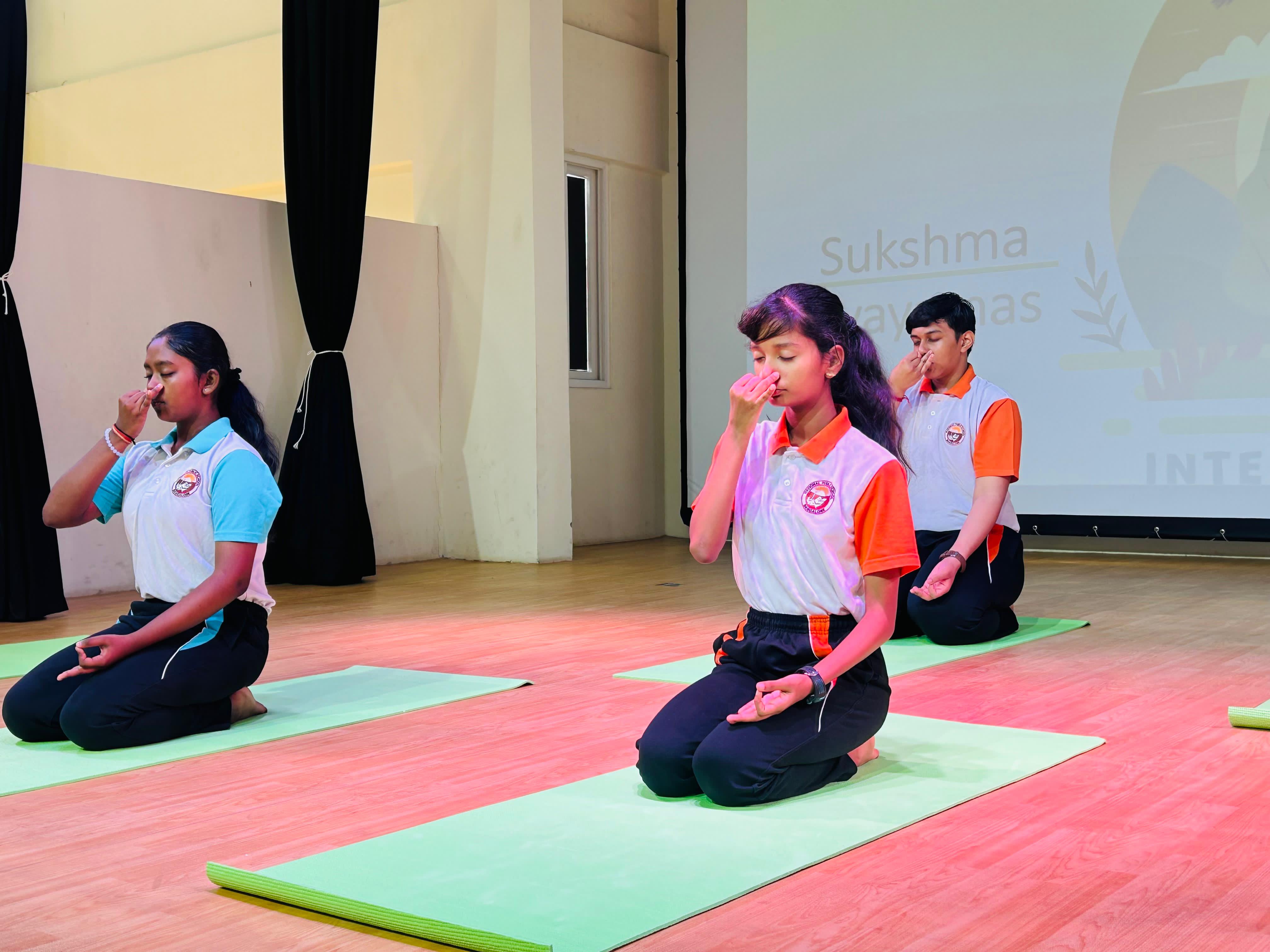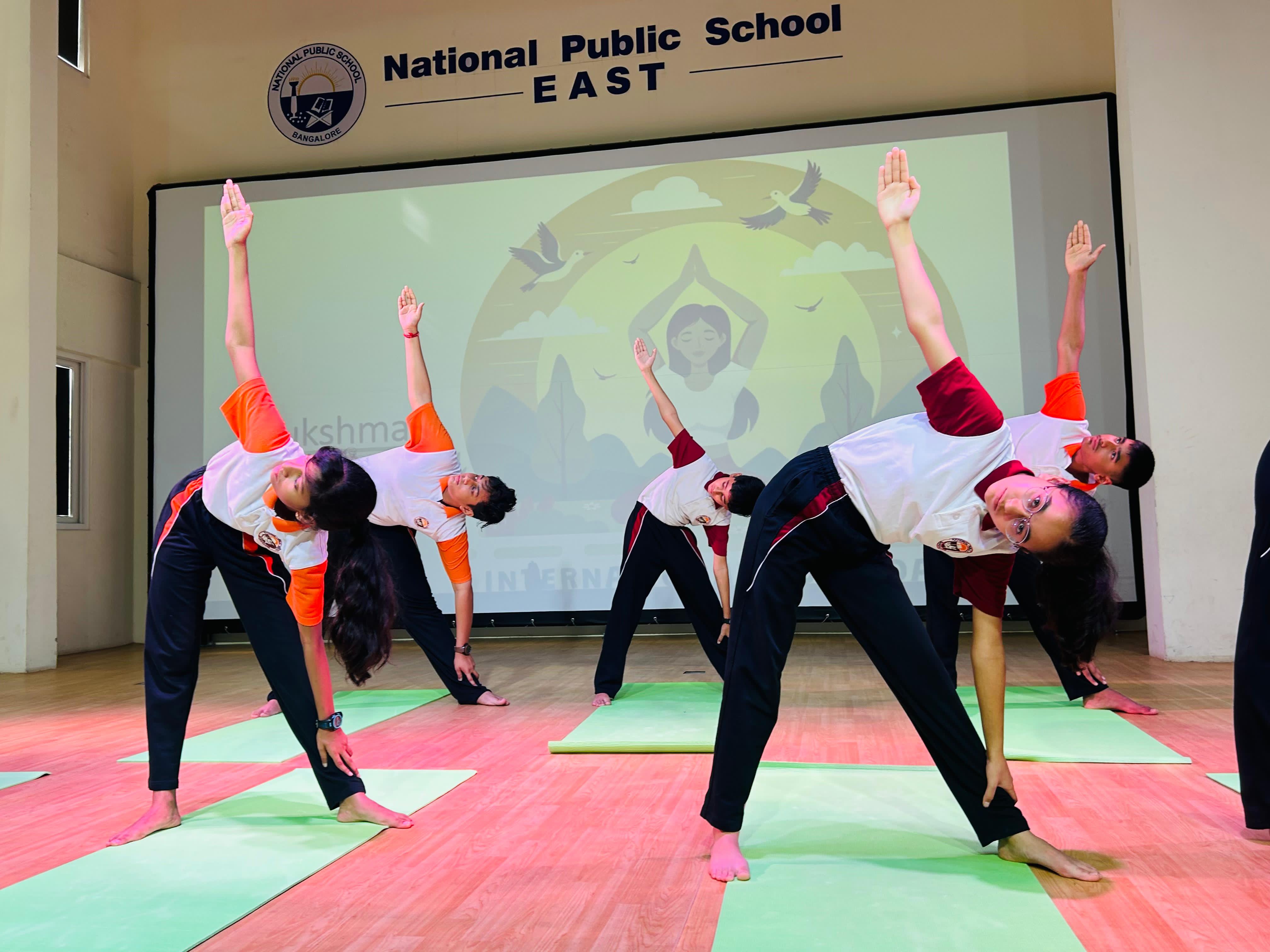 The school assembly on International Yoga Day was conducted by the students of Grade 9A with great enthusiasm, highlighting the importance of yoga in achieving harmony between the mind, body, and soul.