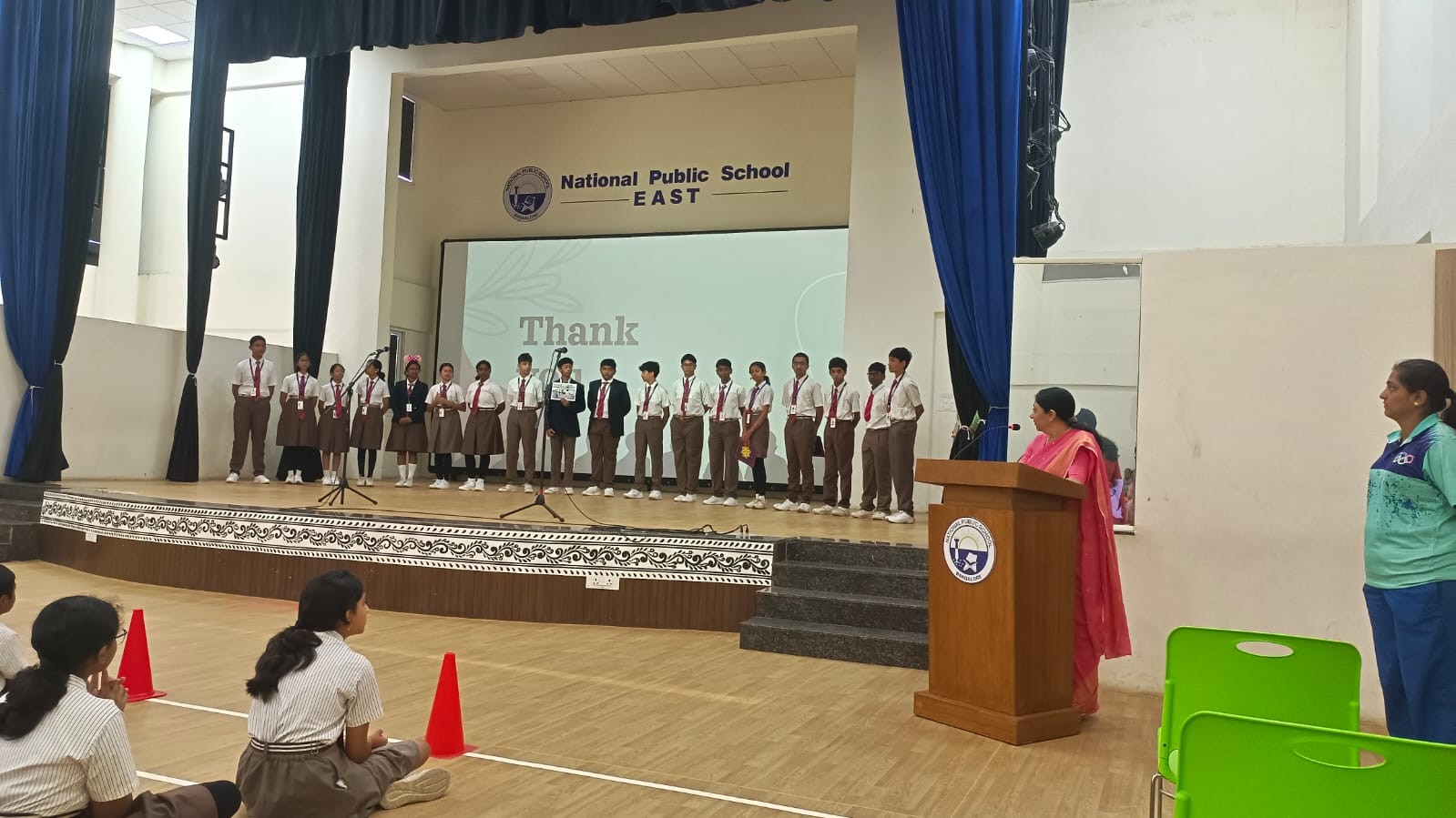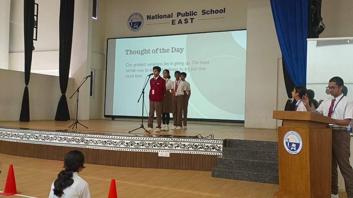 The assembly began with the School Prayer and the National Pledge, fostering a sense of unity and national pride. This was followed by the Thought for the Day — “Our greatest weakness lies in giving up. The most certain way to succeed is always to try just one more time.” — beautifully capturing the essence of perseverance.