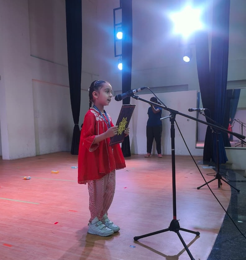The assembly began with prayers invoking Lord Ganesha’s blessings, followed by a thoughtful presentation on the significance of Ganesh Chaturthi. The young learners highlighted how Lord Ganesha, the remover of obstacles, guides us towards wisdom, humility, and prosperity. Through songs, speeches, and enactments, they also encouraged everyone to strike a healthy balance between technology and real-life connections.