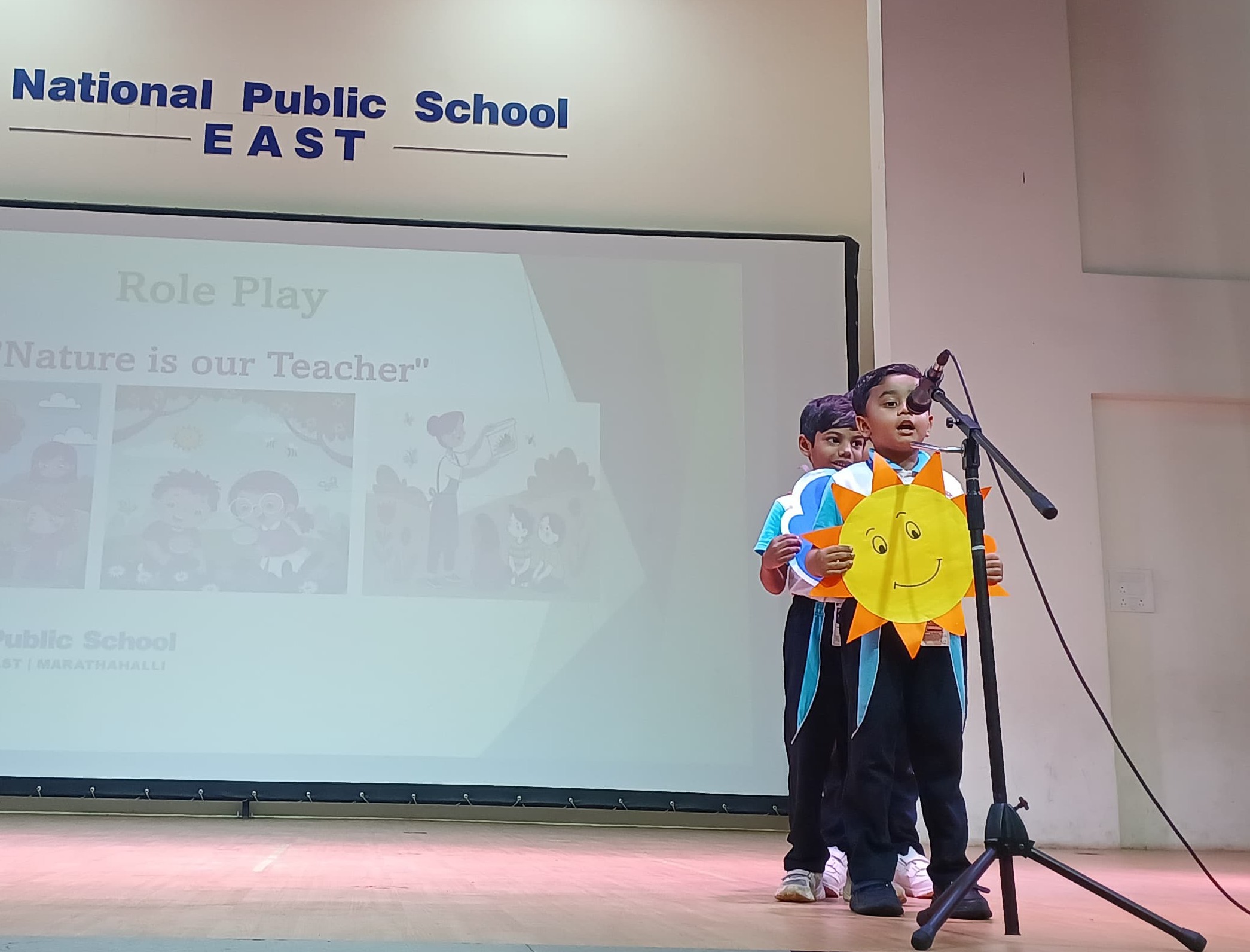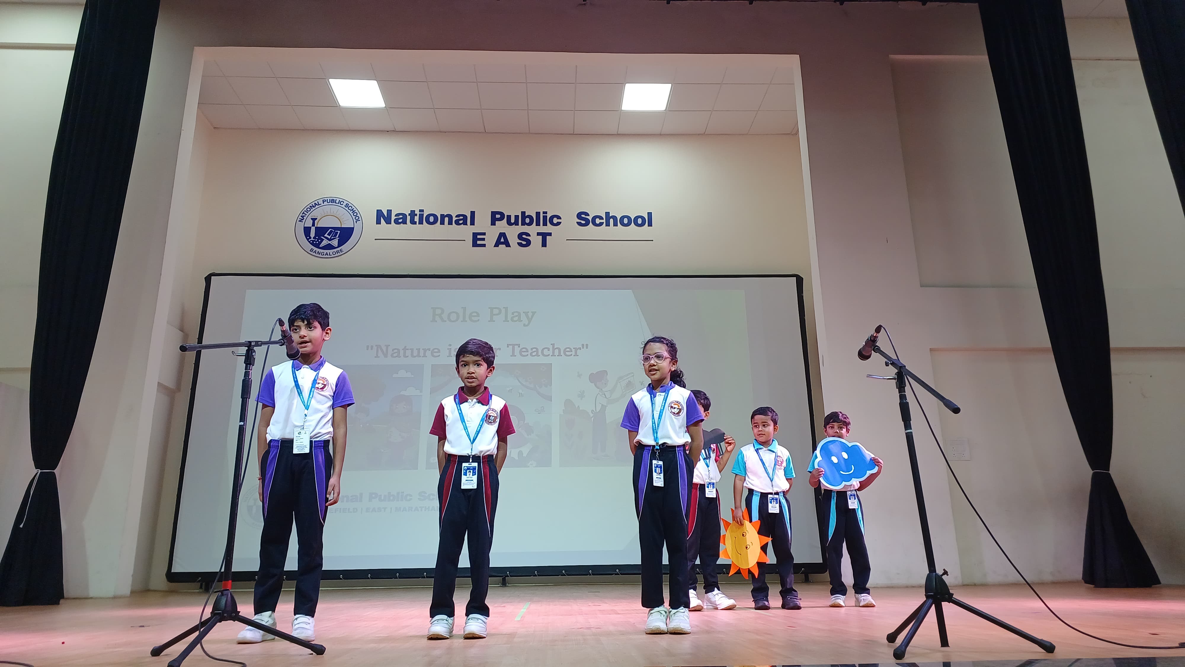 A delightful song on nature was sung by the students, bringing smiles and applause from everyone. It reminded us to appreciate the trees, the sun, the rain, and all the wonders around us that silently teach us how to live better. The role play beautifully demonstrated how different elements of nature like the sun, tree, clouds, and ant teach us important values. The assembly beautifully conveyed that nature is indeed our greatest teacher.