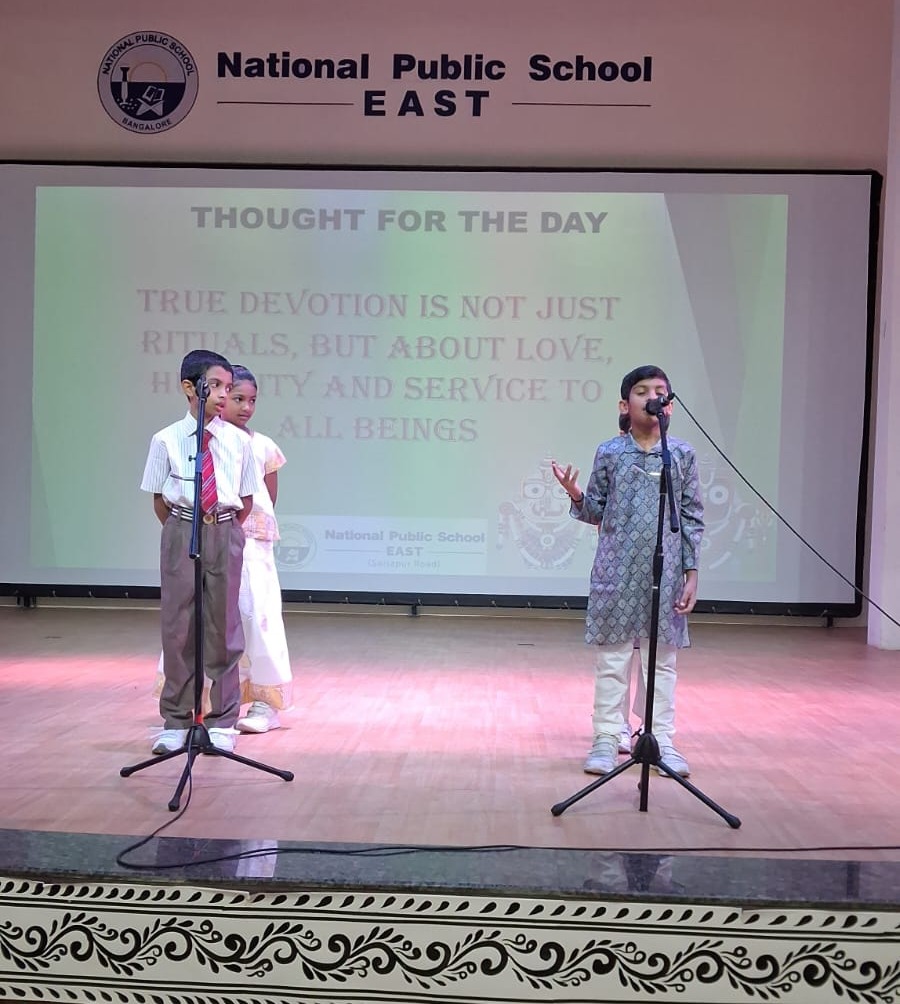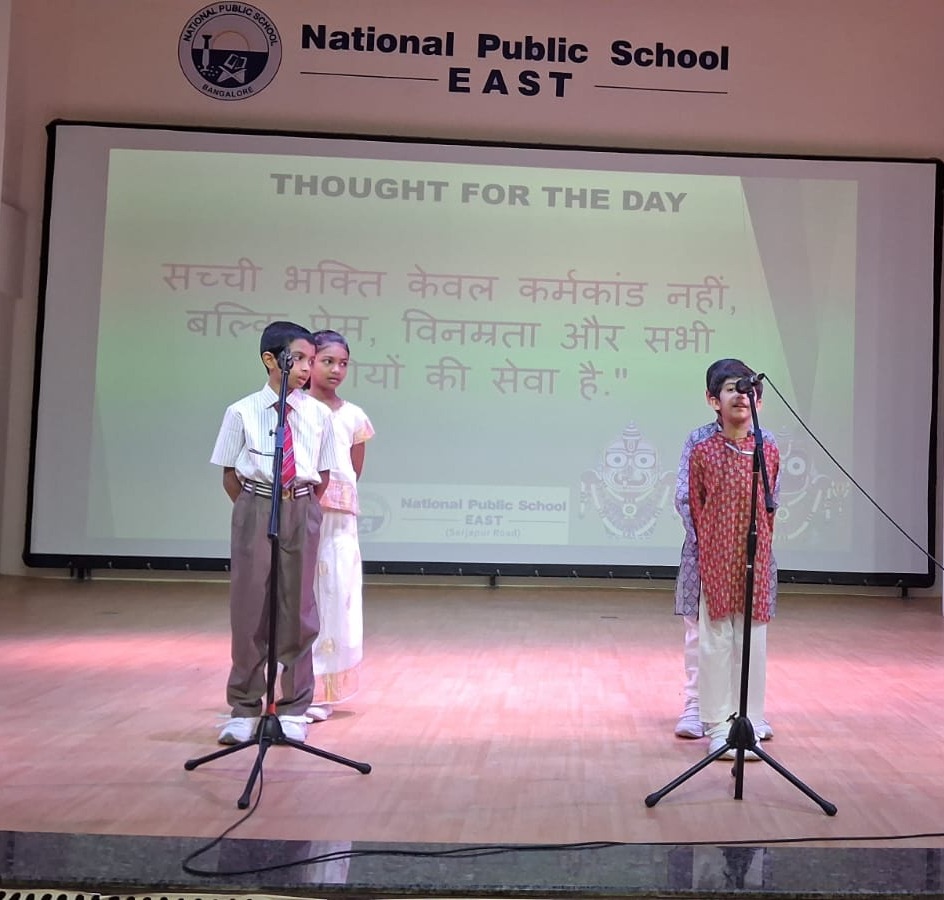 To mark the auspicious occasion of Rath Yatra, a special morning assembly was organized by the students of Grade 4A at NPS East. The event aimed to instill spiritual values and cultural awareness while promoting unity, compassion, and humility which are the core essence of Rath Yatra.