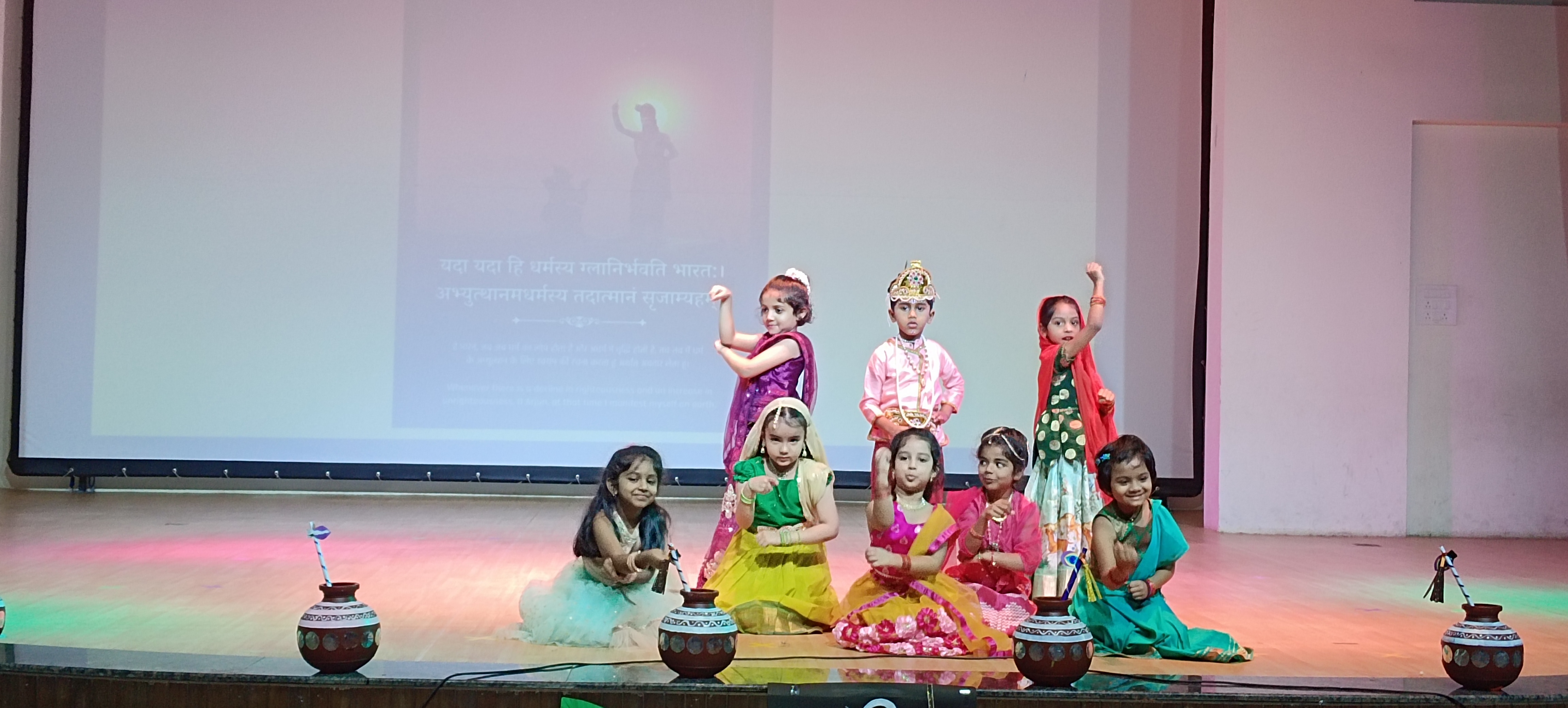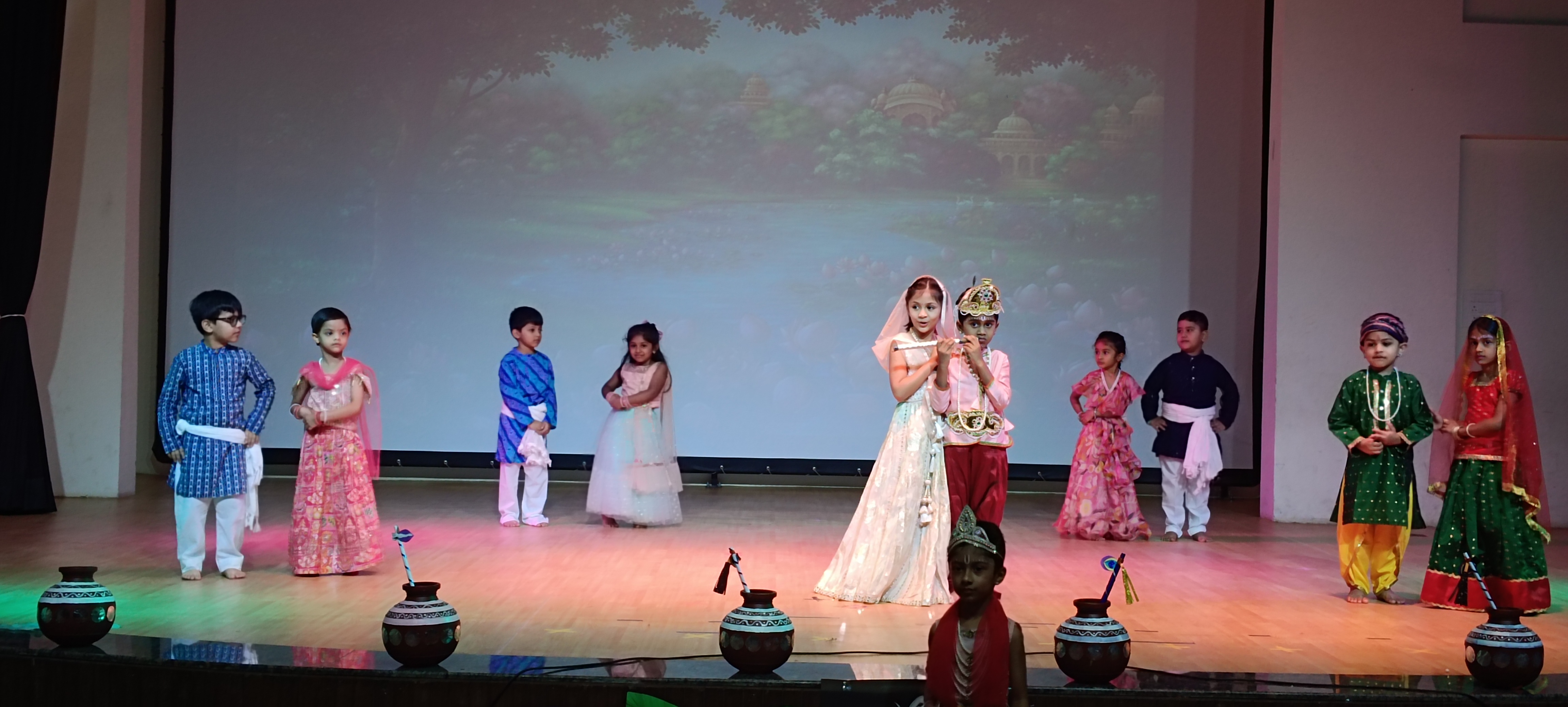 KG2 C students enthralled the audience through their class assembly as a lively skit, song and dance performance portraying Lord Krishna’s birth and his fondness for butter. The Nursery students dressed as Radhas and Krishnas, melted hearts with their cuteness, while the KG1 students, in their traditional attire, added an extra charm to the occasion. The event was a wonderful blend of learning through celebration!