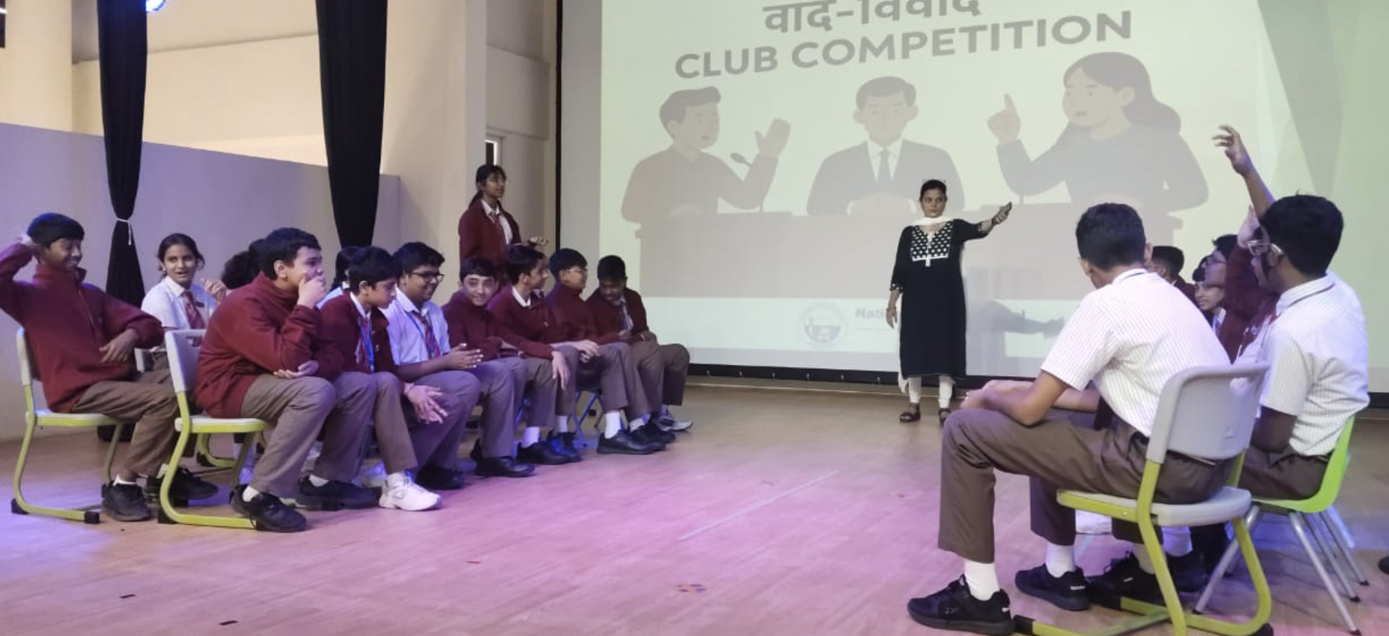Participants debated on thought-provoking topics such as “Kya Artificial Intelligence Shiksha Pranali Mein Upyogi Hai?” and “Online Padhai vs Offline Padhai.” They presented well-researched arguments, countered opposing views effectively, and expressed their ideas with clarity and conviction.