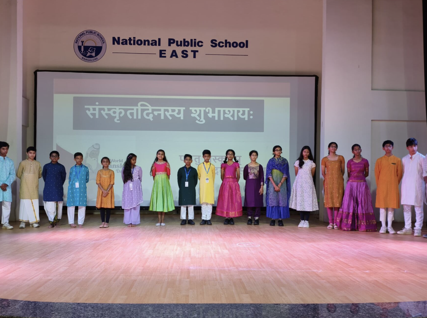 The assembly began with a warm welcome, morning prayer, national pledge, and thought of the day presented in four languages, followed by the word of the day, a short video on Sanskrit’s significance, news, and weather updates. A brief quiz added an interactive element, helping students understand how Sanskrit is interwoven with India’s science and cultural traditions.