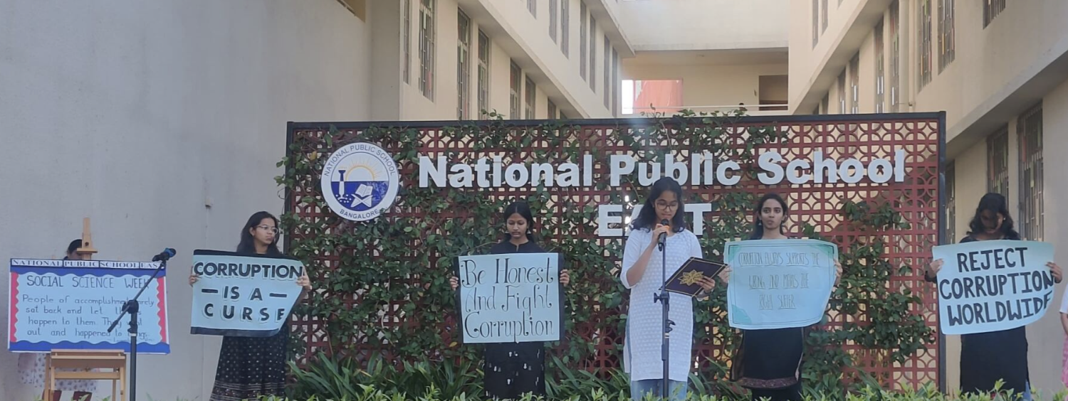 The week concluded on October 31 with a Teacher’s Talk by Ms. Sapna on “Anti-Corruption and World Peace.” Students from Grades 1 to 9 took an oath against corruption, and the celebration ended on a hopeful note with the song “We Shall Overcome.”