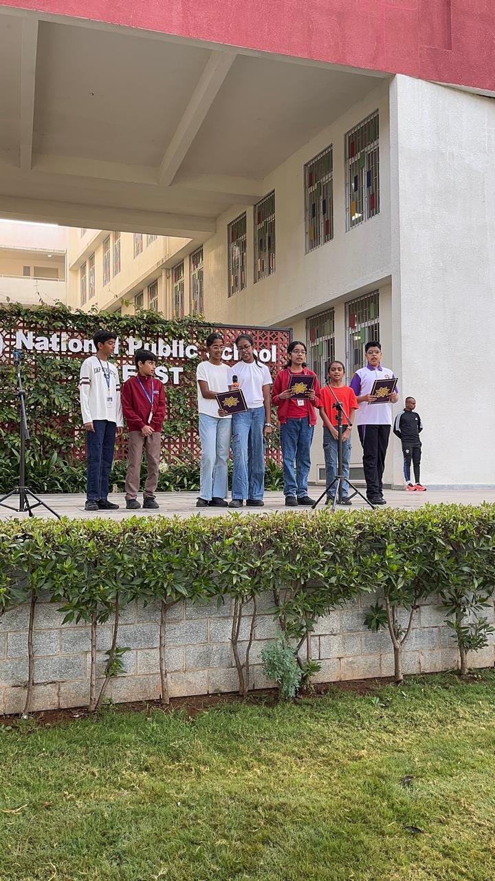 The assembly began with a cheerful prayer, followed by the National Pledge, reminding students of their duties and the importance of unity and respect for all.