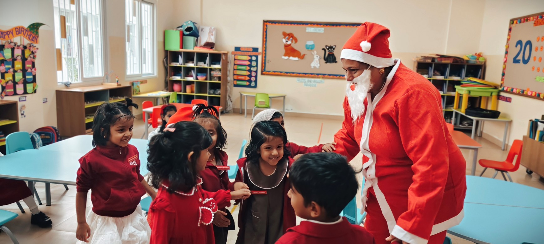 The Pre-Primary students and faculty celebrated Christmas in the most delightful way, spreading joy and festive cheer all around. The little ones captivated everyone with their enthusiasm and vibrant festive spirit. The teachers made it special by singing carols, and the entry of Santa Claus brought the festive cheer filled with joy and togetherness. To make the occasion even more memorable, a fun-filled class party was arranged.