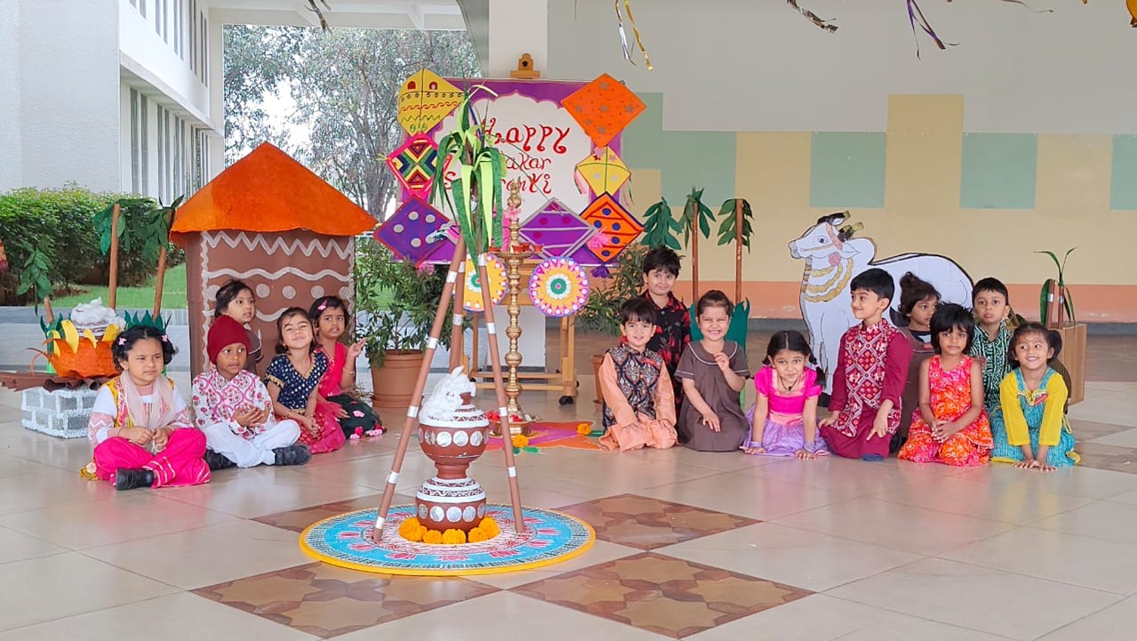 Pre-Primary students dressed in beautiful traditional attire, added festive charm at school for the Sankranti celebration. The little ones learnt the significance of this festival and participated in mixing ingredients and tasting 'Ellu Bella' the savoured treat of Karnataka. Kite flying on the school ground added to their excitement, making the celebration truly memorable for everyone!